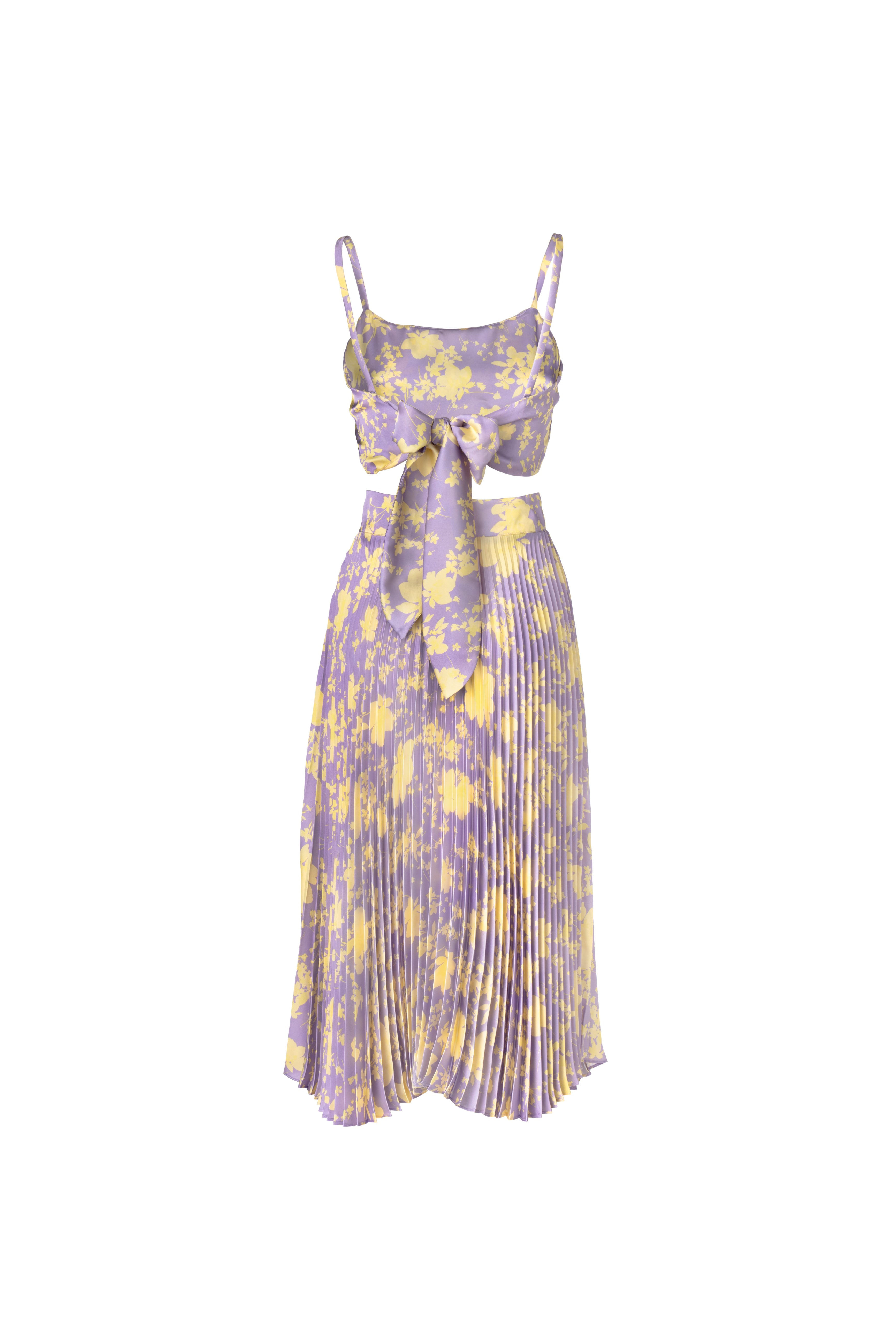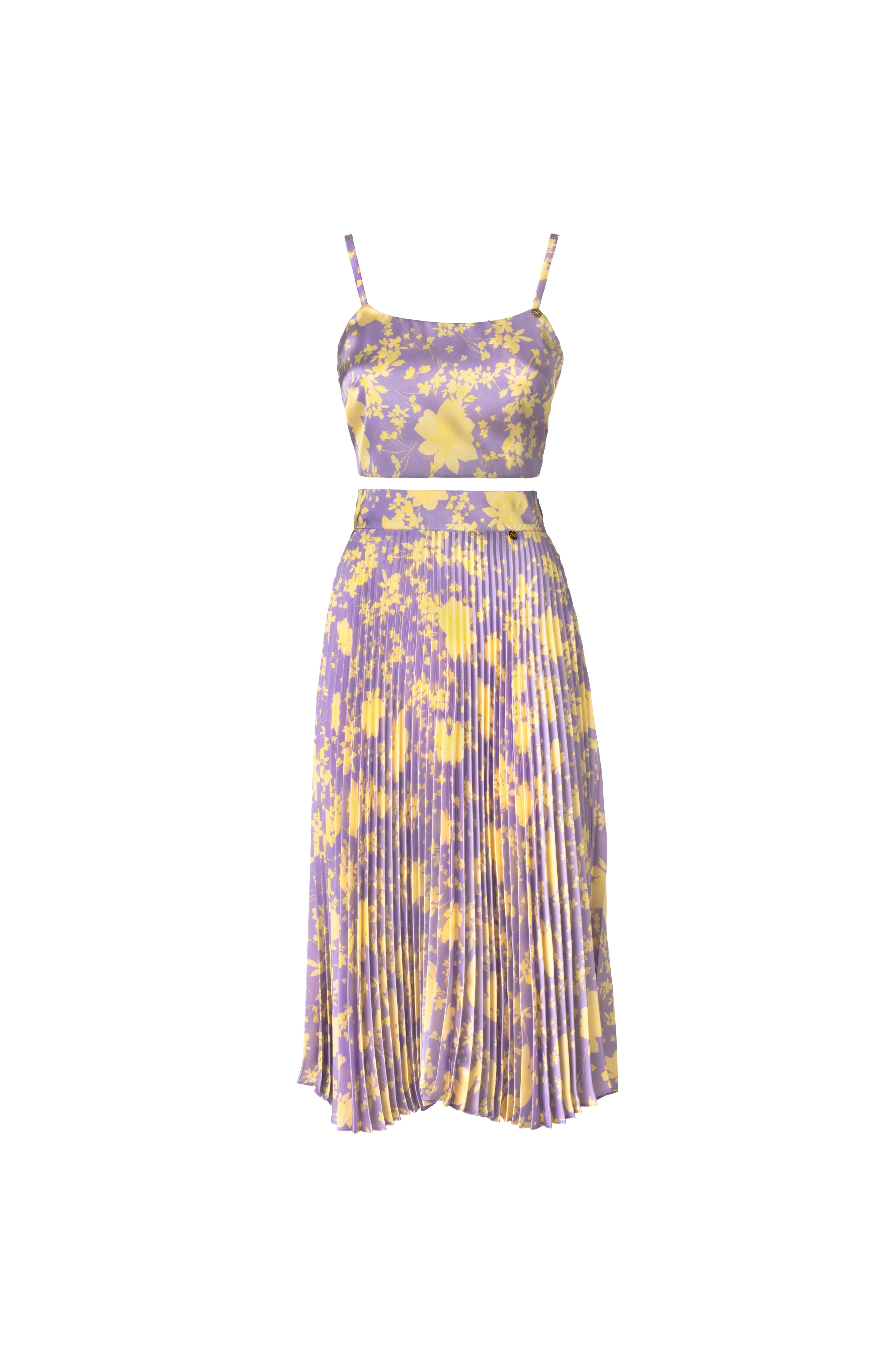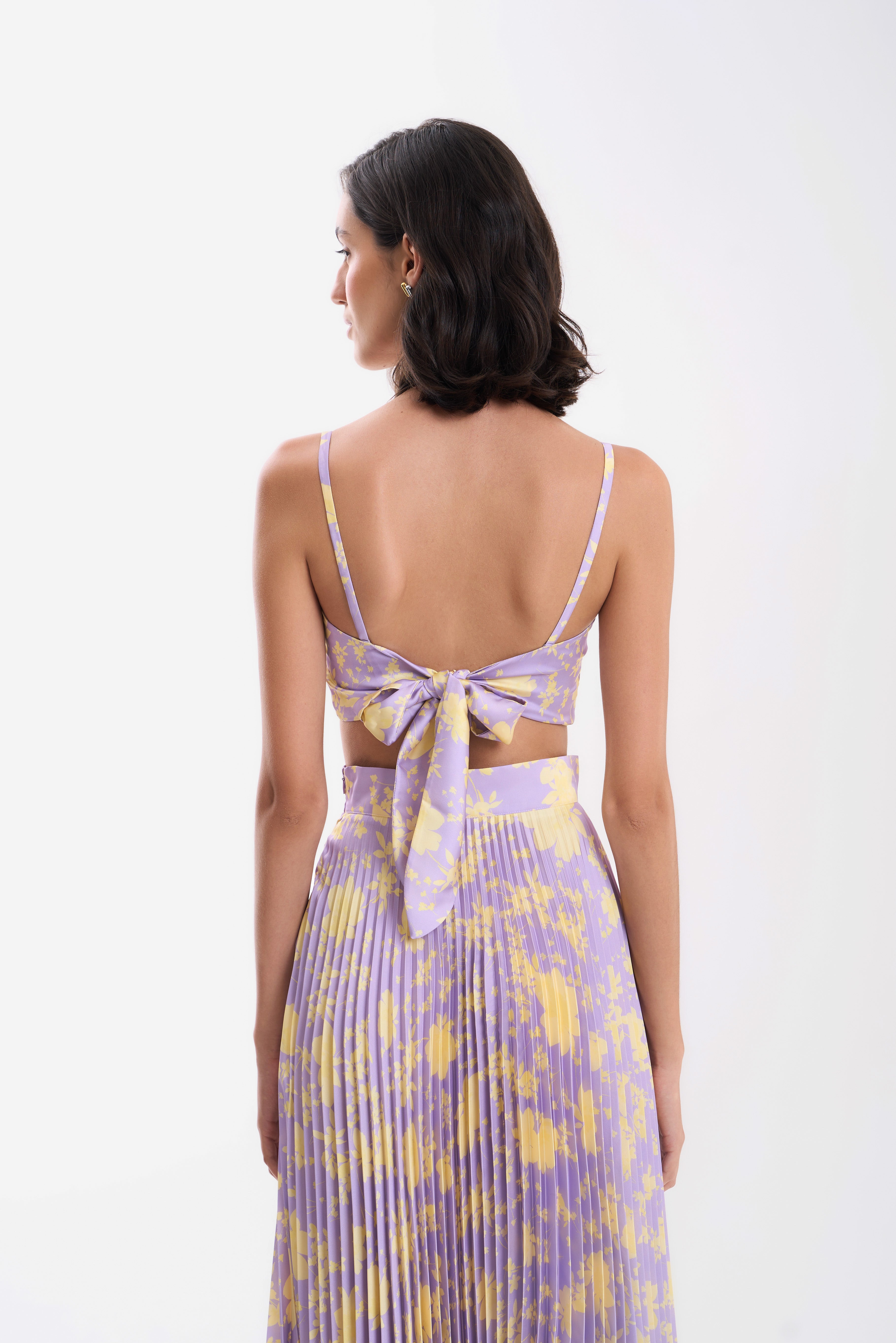 Top lilla smanicato in tessuto riciclato, con linea pulita e femminile. Può essere abbinato a gonne o pantaloni per u...